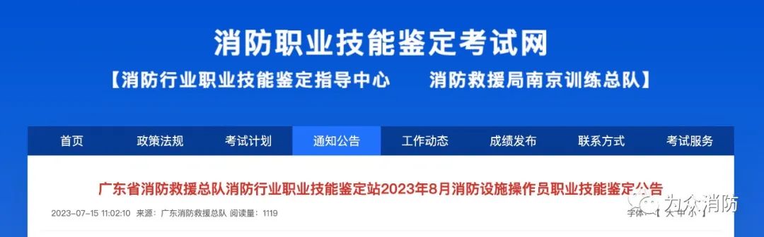 公众号:广东省消防职业技能鉴定站