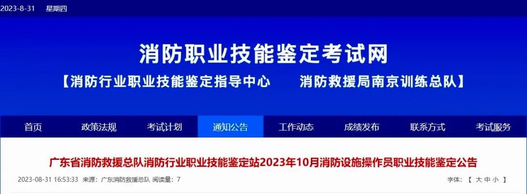根据消防行业职业技能鉴定指导中心2023年度消防设施操作员职业技能鉴定工作安排,广东鉴定站计划于10月7日至10月31日开展鉴定考核工作,现将有关事项公告如下: