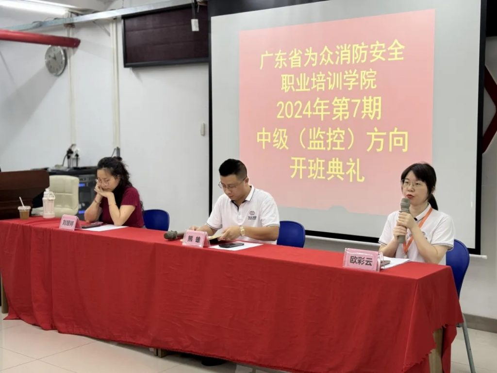 2024年5月13日,广东为众消防学院举行了第7期中级(监控方向)实操开班典礼。开班典礼上由副院长熊雄、教导处主任欧彩云及主要讲师刘慧婷同志出席。熊副院长作为学院代表发言讲话。熊副院长阐释了本次中级(监控方向)实操培训的目的、核心内容及预期取得的成效。他强调,此次培训旨在提升学员们的专业技能和实操能力,使他们能够更好地履行消防职责,为社会的和谐稳定贡献自己的力量。